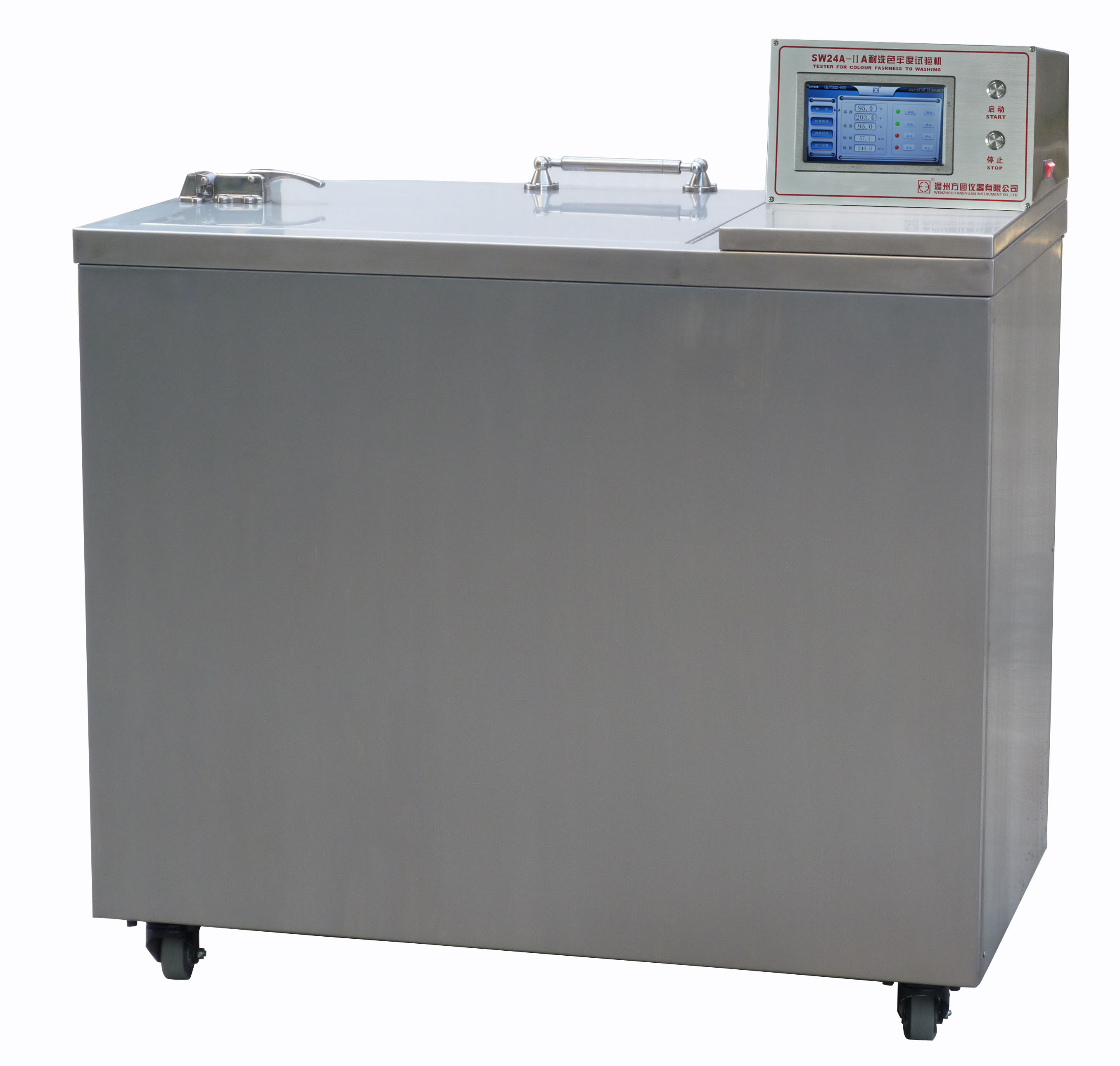 32 SW24A-IIA耐洗色牢度試驗機 GB/T3921.1~GB/T3921.5, ISO105?D01,ISO105 C01~ISO105 C05,ISO105 D01,ISO105 C06,GB/T5711,JIS L 0844,JIS L 0860,AATCC 61等標準。
